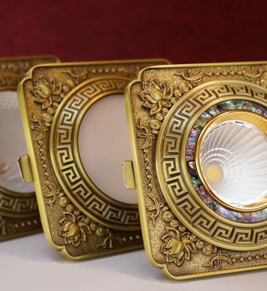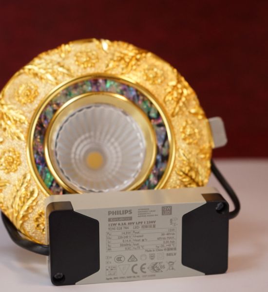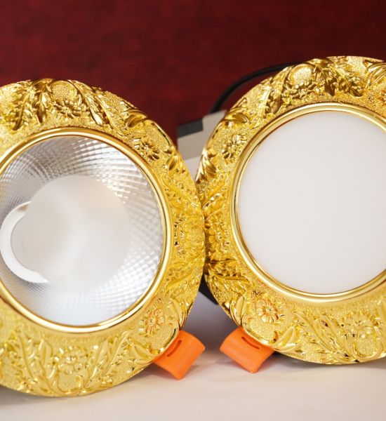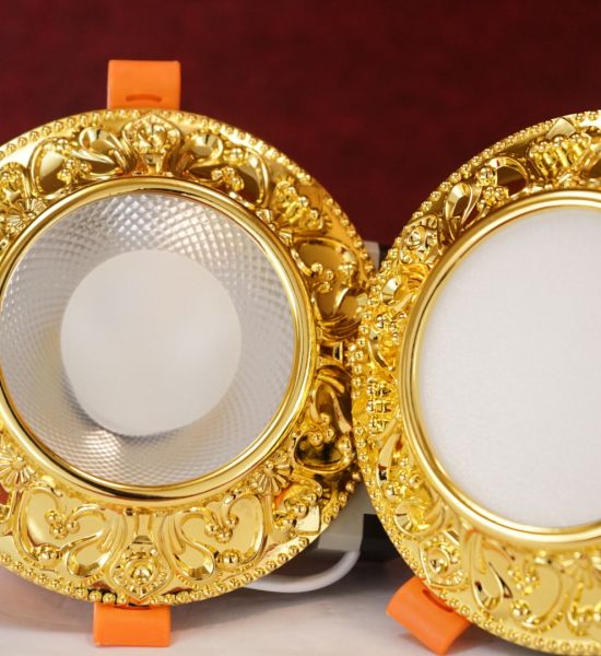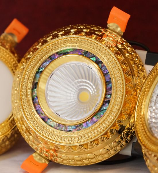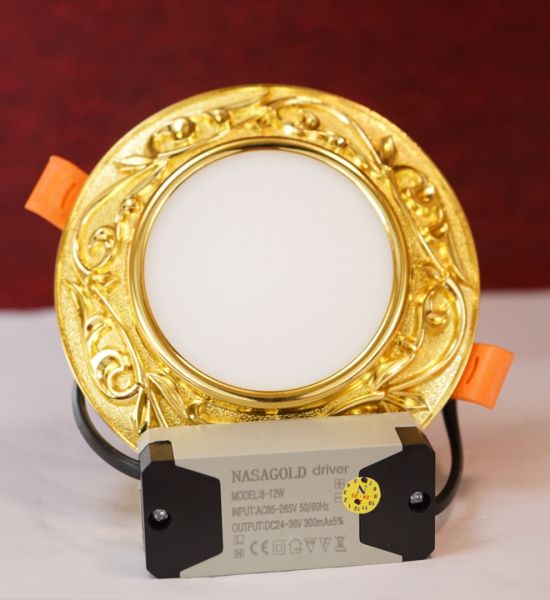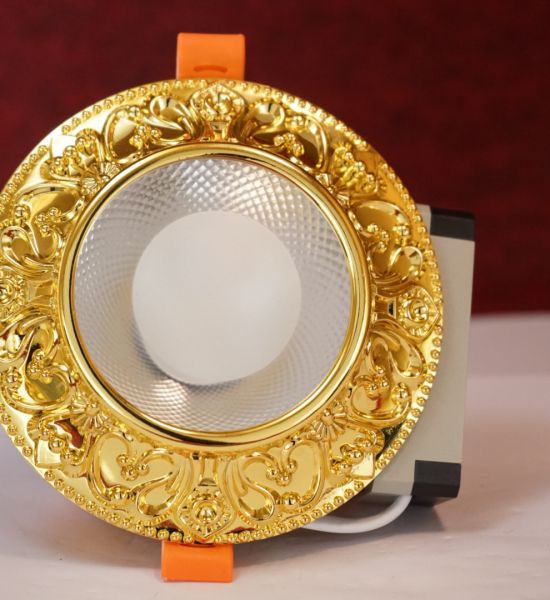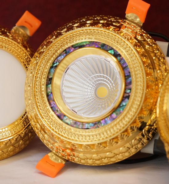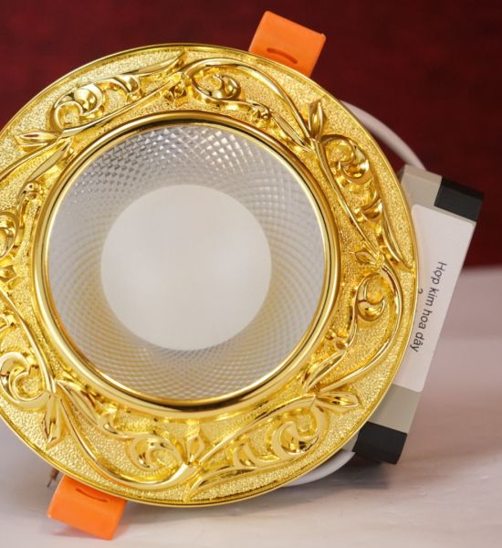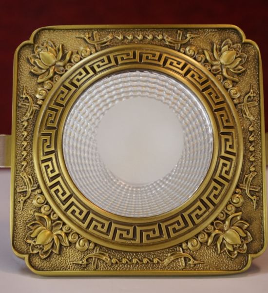Đèn led âm trần đồng mạ vàng 12w chạm khắc hoa văn sang trọng