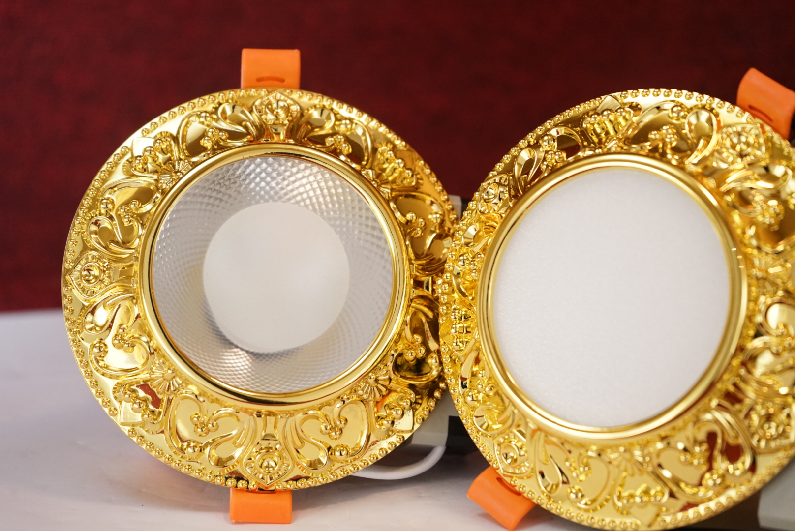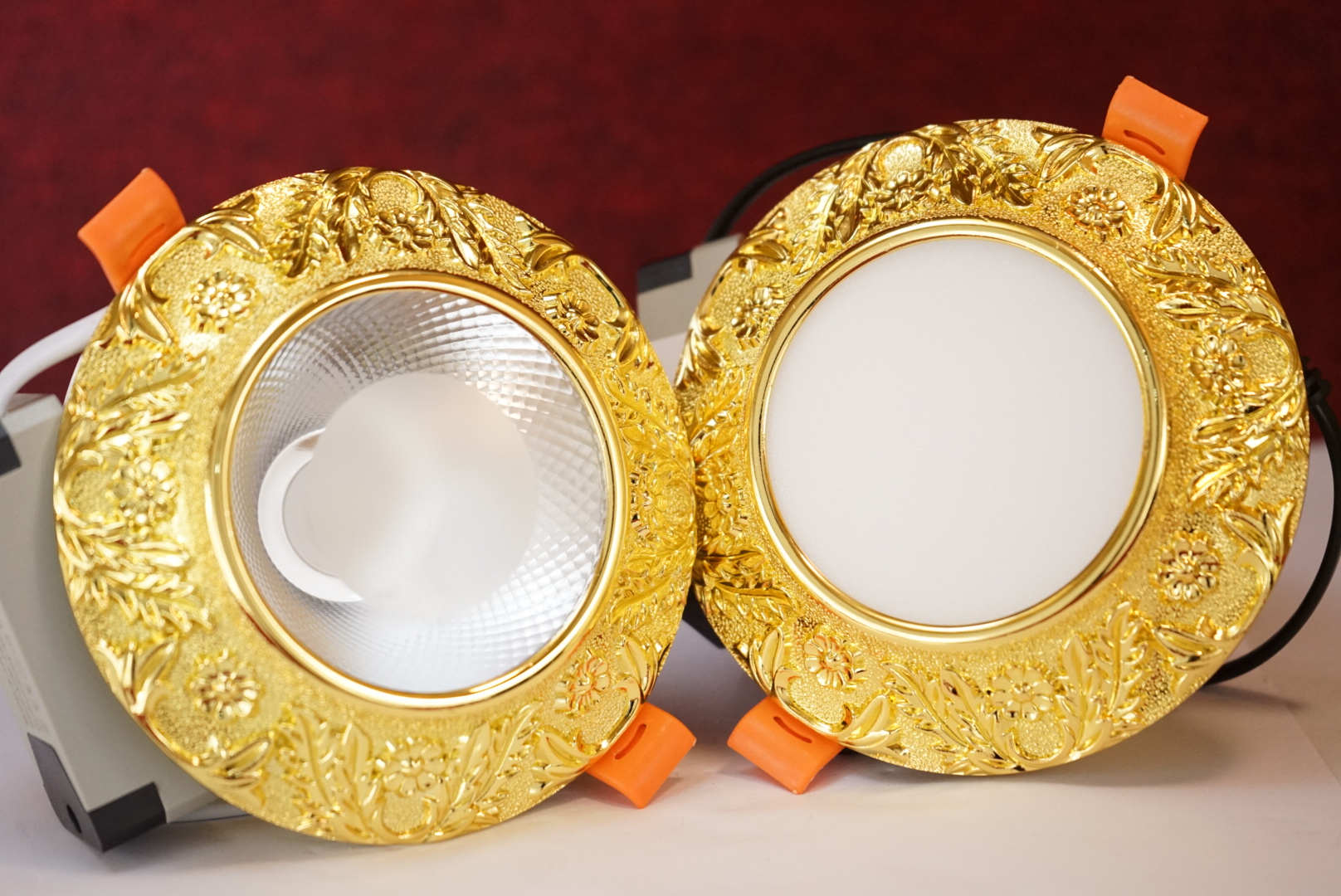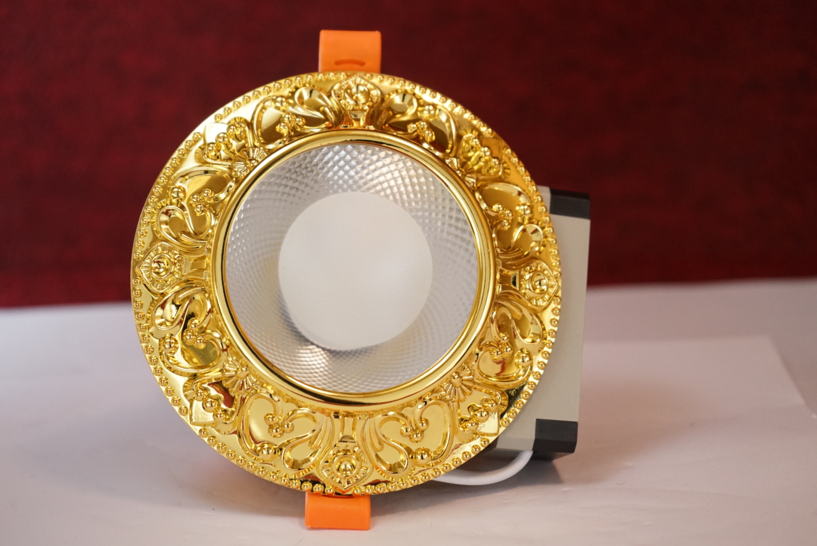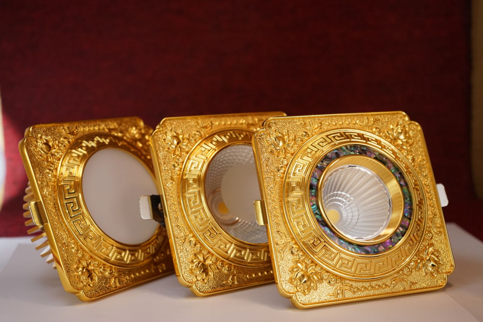 Ánh sáng đồng đều. Đèn âm trần cao cấp được thiết kế hoa văn cổ điển sang trọng của nên văn hoá Châu Âu.