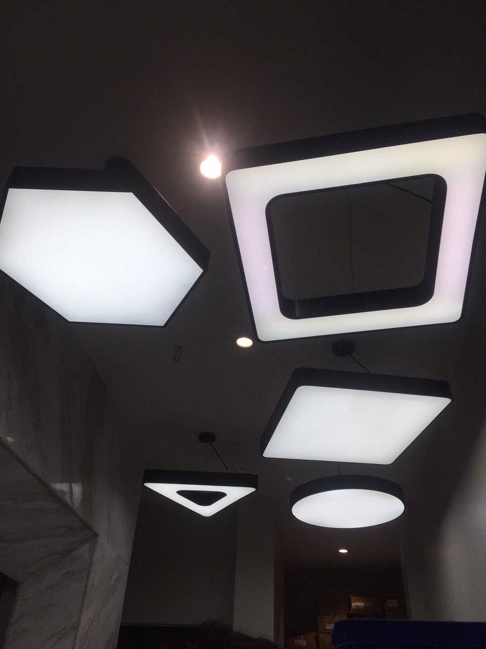 - Có thể lắp đèn dạng đèn thả hoặc lắp đèn nổi trên trần.