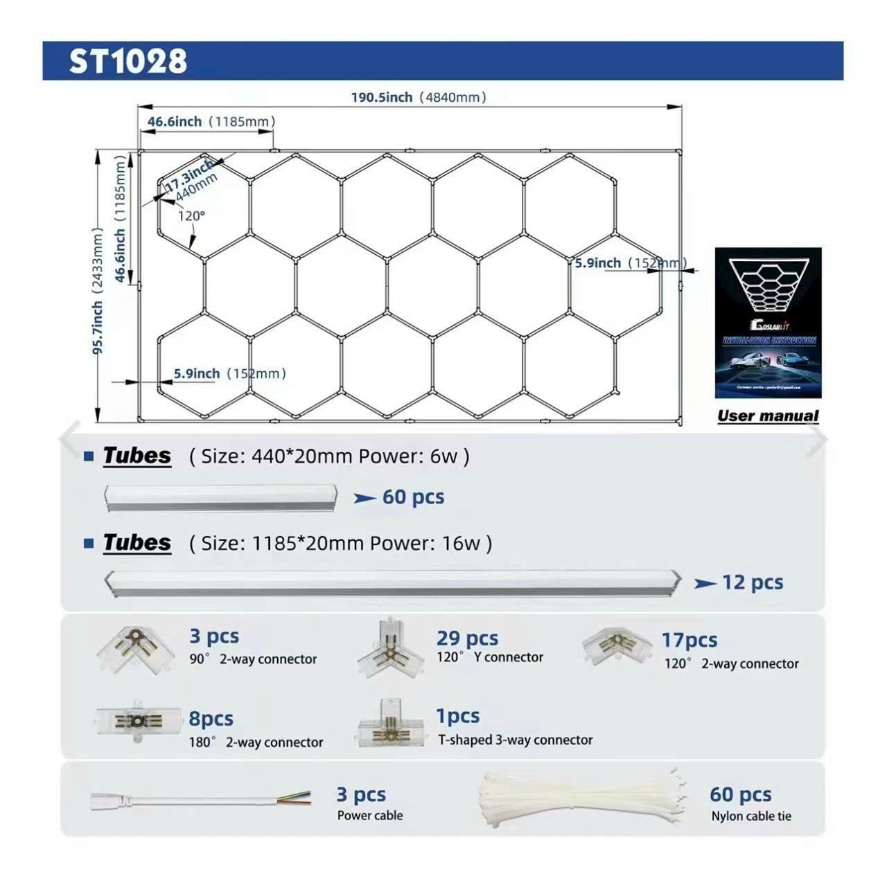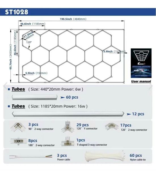 Tổng phụ kiện : 69 Bóng 18W 1175mm: 12 bóng Bóng 6W 440mm: 56 bóng